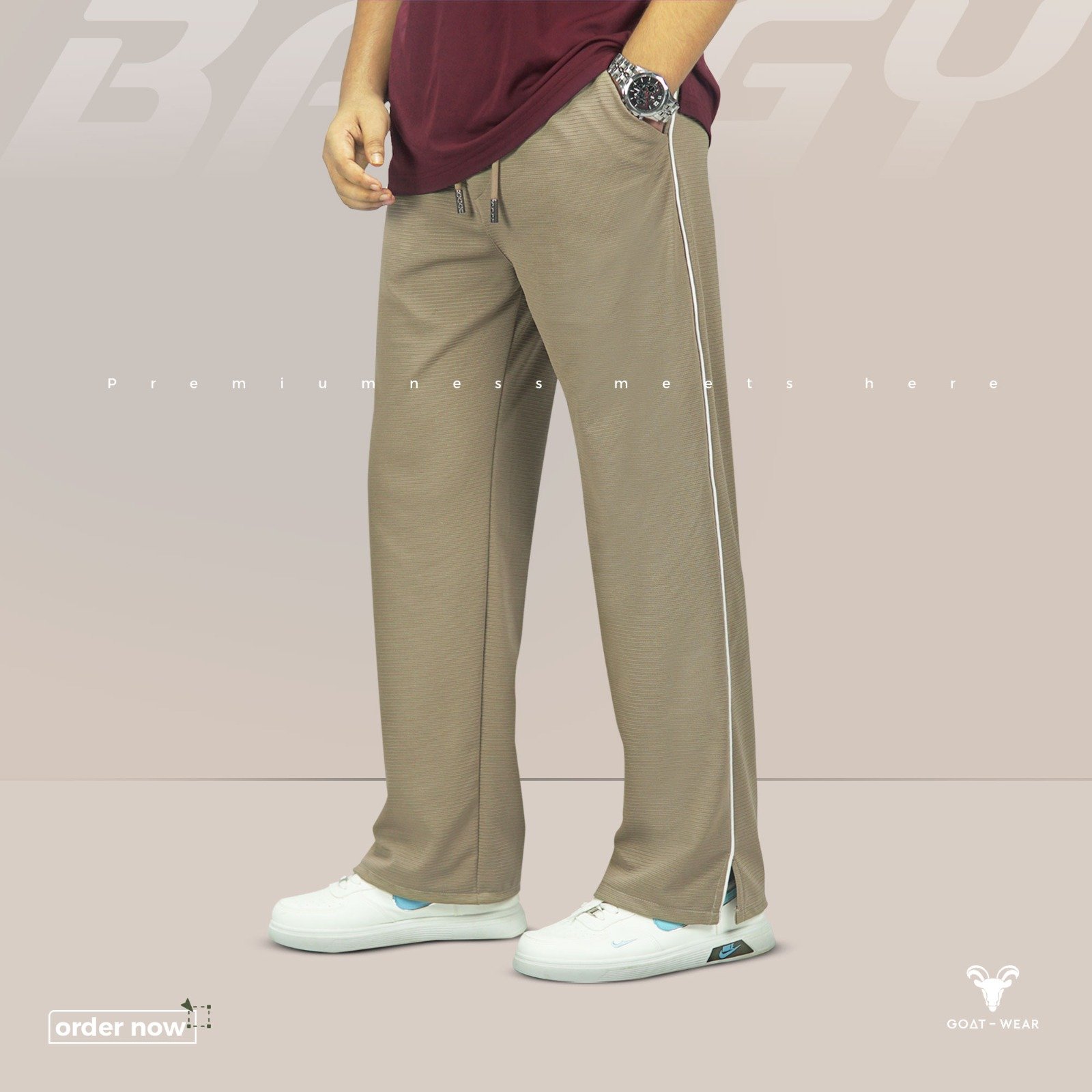 Premium Baggy Trouser ( Cream White, Khaki & Black )